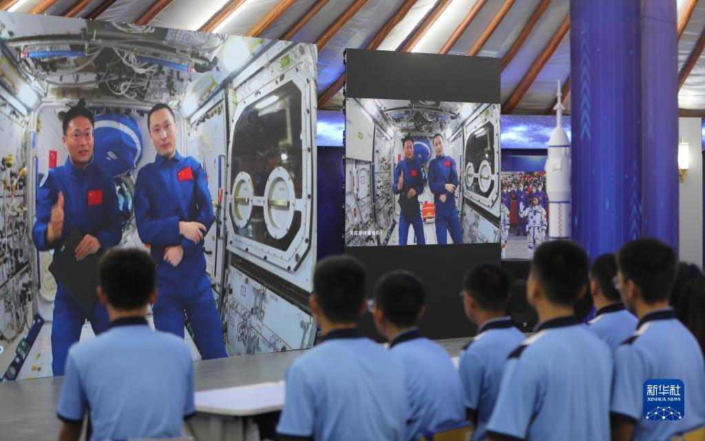 9月21日,在內蒙古阿拉善盟額濟納旗,學(xué)生收看“天宮課堂”。