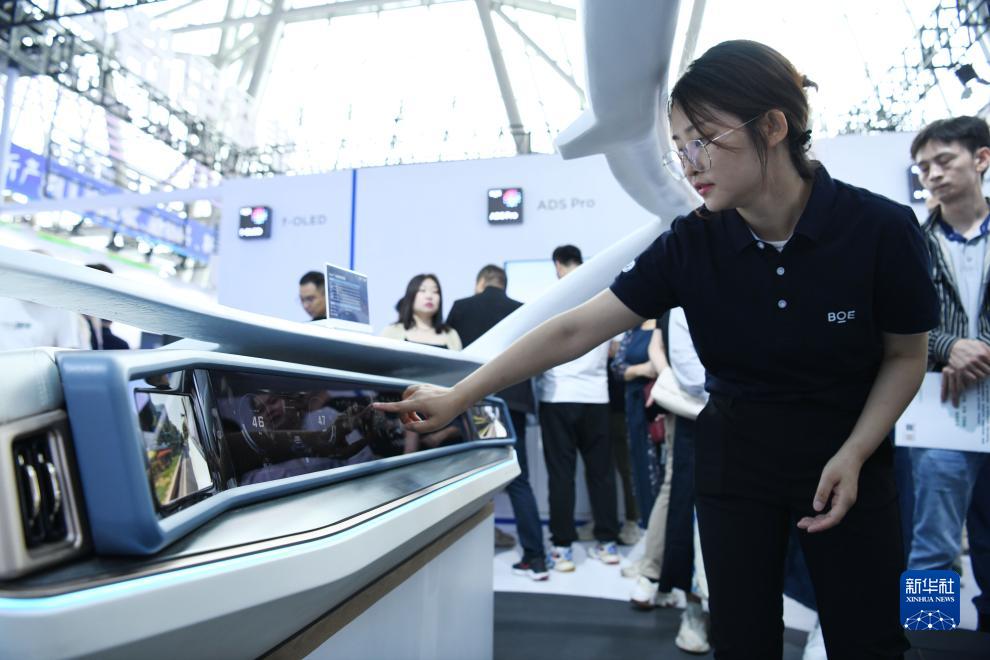 9月21日,在2023世界制造業(yè)大會(huì )上,工作人員在介紹車(chē)載智慧駕艙。