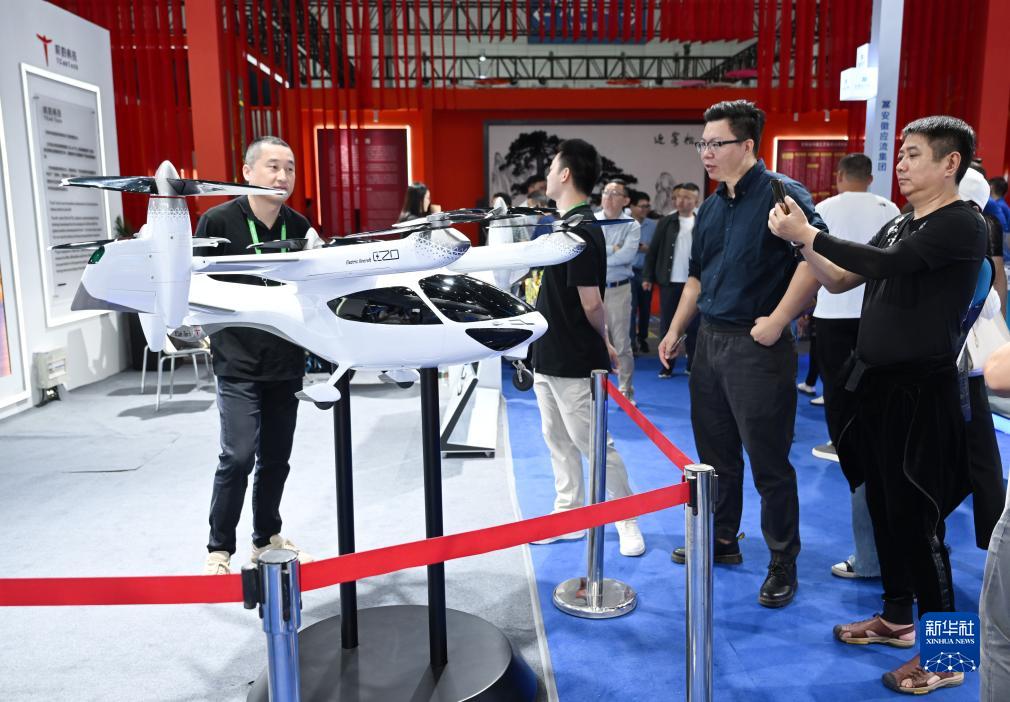 9月21日,觀(guān)眾在2023世界制造業(yè)大會(huì )參觀(guān)一款傾轉旋翼電動(dòng)飛機。