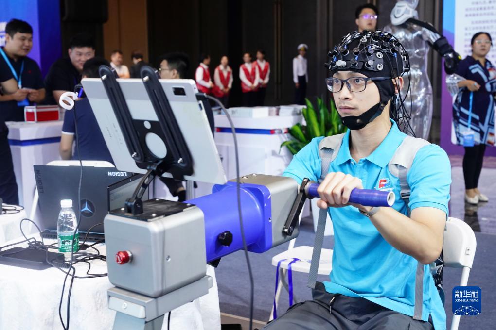 9月21日,在第五屆中國康復輔助器具產(chǎn)業(yè)創(chuàng )新大會(huì )上,參會(huì )者在體驗康復輔助器具產(chǎn)品。