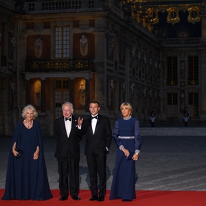9月20日,在法國巴黎近郊的凡爾賽宮,英國國王查爾斯三世抵達國宴現場(chǎng)。