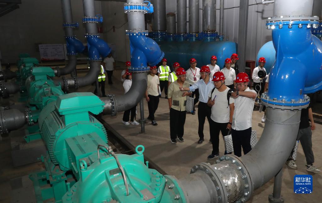 9月22日,觀(guān)摩團成員在中建二局安裝公司機電項目冷凍機房施工展示區內參觀(guān)。