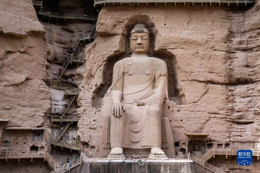 9月21日,游客在炳靈寺石窟參觀(guān)。