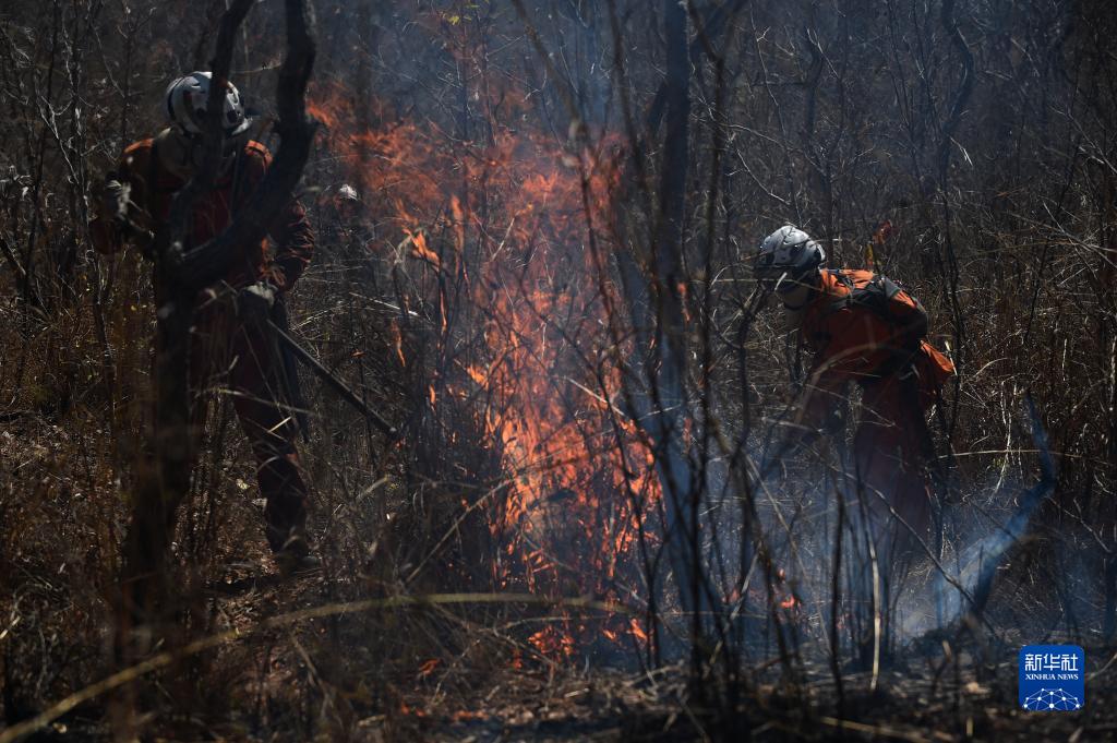 9月22日,消防人員在巴西巴伊亞州里亞尚-達斯內維斯附近進(jìn)行滅火作業(yè)。