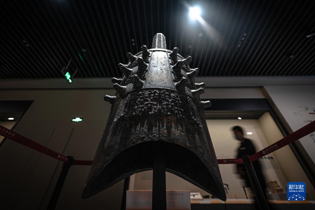 9月23日,參觀(guān)者在湖北省博物館長(cháng)江文明特展上觀(guān)看展出的曾侯輿甬鐘。