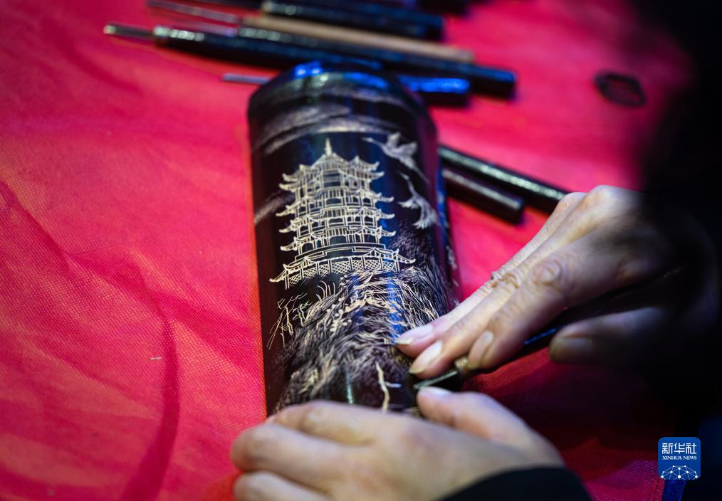 9月21日,選手徐海清在現場(chǎng)展示雕刻塑造(竹雕)技藝。