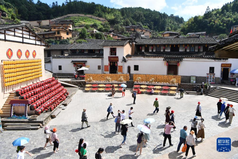 當日,中國歷史文化名村福建省尤溪縣桂峰村迎來(lái)一年一度的“曬秋”文化節,吸引游客前來(lái)游玩拍照。近年來(lái),桂峰村依托深厚的歷史文化底蘊和豐富的民風(fēng)民俗資源,推動(dòng)“文化+旅游”融合,開(kāi)展桂峰曬秋節、蔡氏祭祖大典、“古村風(fēng)情”攝影展等活動(dòng),讓古村古厝煥發(fā)出新的生機與活力。