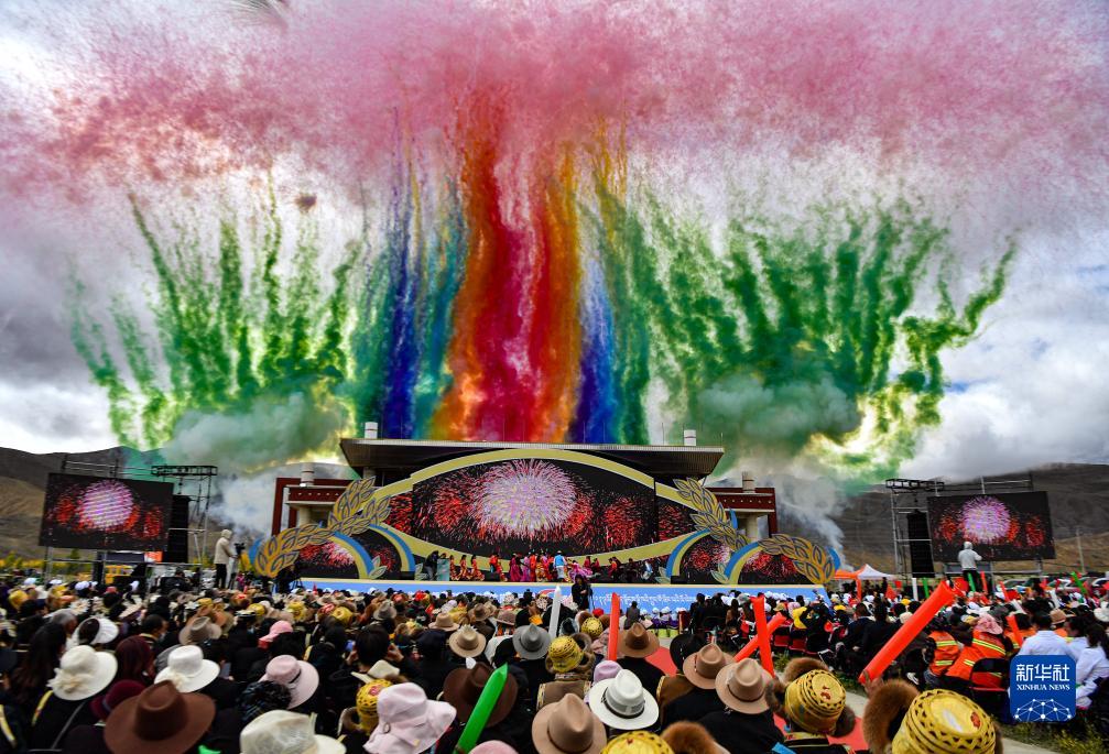 當日,2023年西藏山南中國農民豐收節暨隆子縣玉珞文化旅游節開(kāi)幕式在隆子縣舉行。當地文藝工作者為現場(chǎng)數千名農牧民觀(guān)眾獻上精彩演出,共慶豐收,歌頌家鄉。