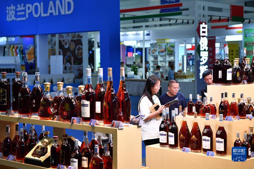 9月22日,觀(guān)眾在一家進(jìn)口酒經(jīng)銷(xiāo)商的展柜前參觀(guān)。
