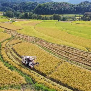 金秋時(shí)節,皖南山區安徽省宣城市旌德縣白地鎮梯田喜獲豐收。金黃的梯田與連綿的群山、錯落的民居相互映襯,勾勒出一幅優(yōu)美的豐收畫(huà)卷。