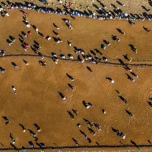 當日,云南省昆明市東川區開(kāi)展稻田摸魚(yú)、攆鴨、捉蛙等活動(dòng),在稻花香里慶豐收。