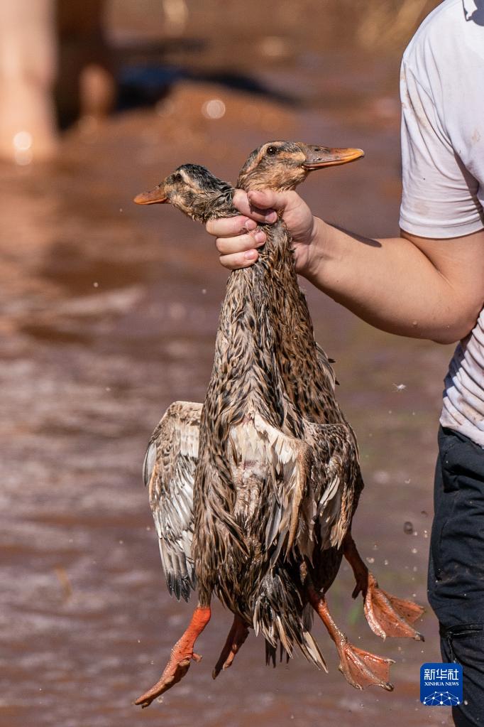 9月23日,在昆明市東川區烏龍鎮,農民在豐收節活動(dòng)上抓到兩只鴨子。