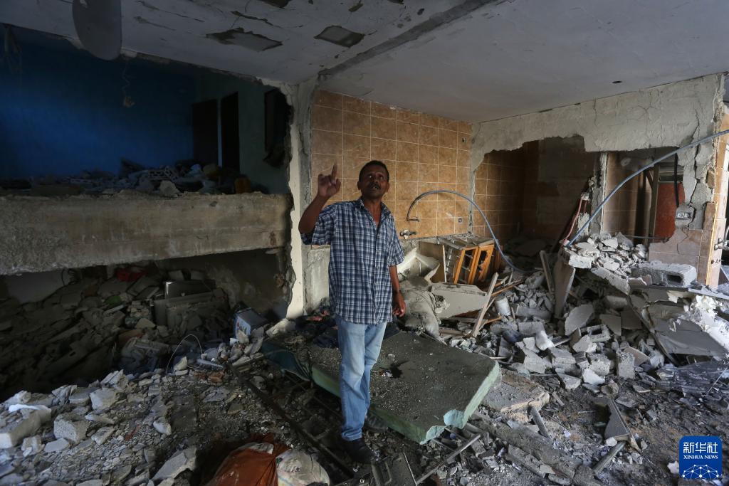 9月24日,在約旦河西岸城市圖勒凱爾姆,一名巴勒斯坦男子在沖突后查看受損建筑。