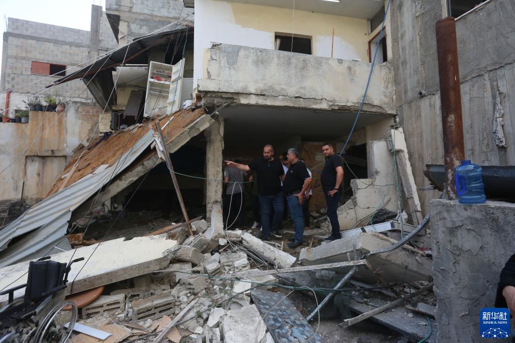 9月24日,在約旦河西岸城市圖勒凱爾姆,巴勒斯坦人在沖突后查看受損建筑。