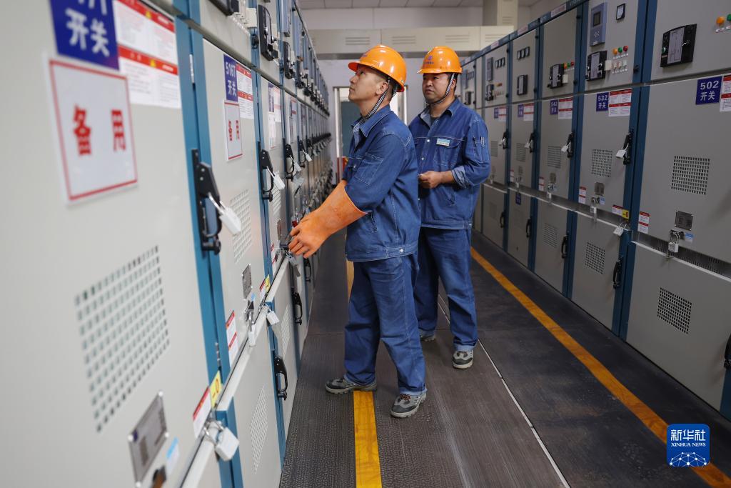 工作人員在寧夏紅寺堡揚水管理處紅三泵站配電室檢查調試設備(9月7日攝)。