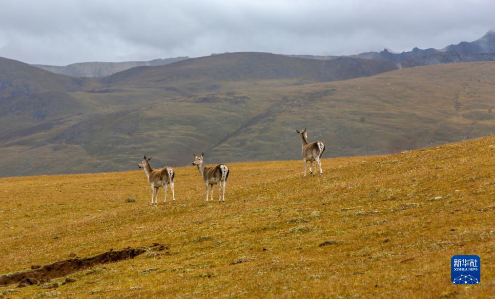 9月24日,幾只西藏馬鹿出現在位于西藏自治區山南市桑日縣的貢德林草原上。