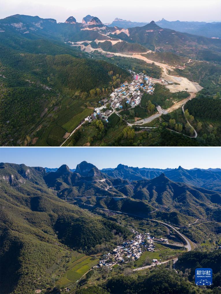 拼版照片:上圖為2020年9月8日拍攝的馬武寨村;下圖為2023年9月20日拍攝的馬武寨村。新華社記者 楊晨光 攝