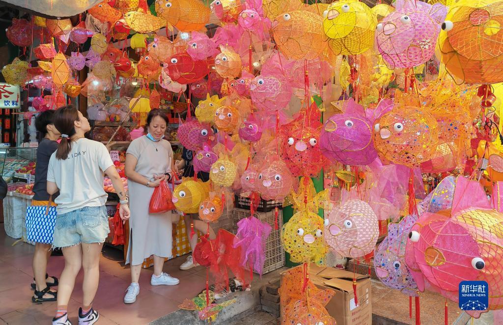 隨著(zhù)中秋佳節日益臨近,在廣州市光孝路一帶,商鋪掛滿(mǎn)了各式傳統手工燈籠,吸引不少市民前來(lái)觀(guān)賞選購。