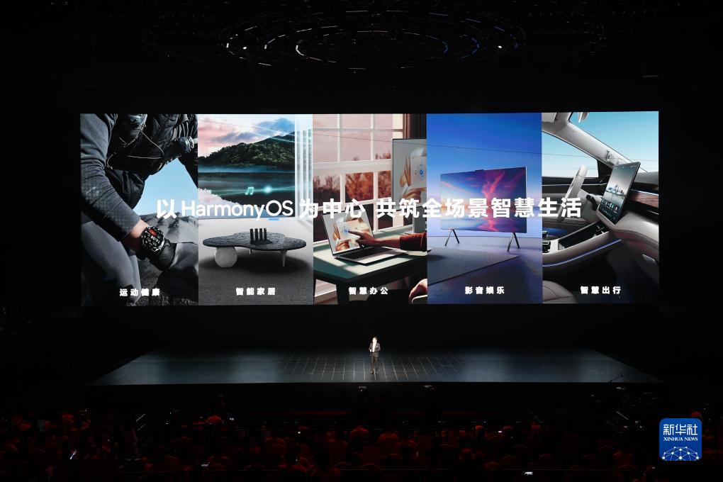 9月25日,華為秋季全場(chǎng)景新品發(fā)布會(huì )上展示以鴻蒙HarmonyOS為中心的全場(chǎng)景智慧生活。