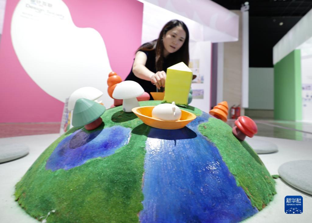 9月25日,參觀(guān)者在“童思筑夢(mèng)——兒童設計美育新時(shí)代”北京國際兒童設計創(chuàng )新體驗展上體驗互動(dòng)展品。