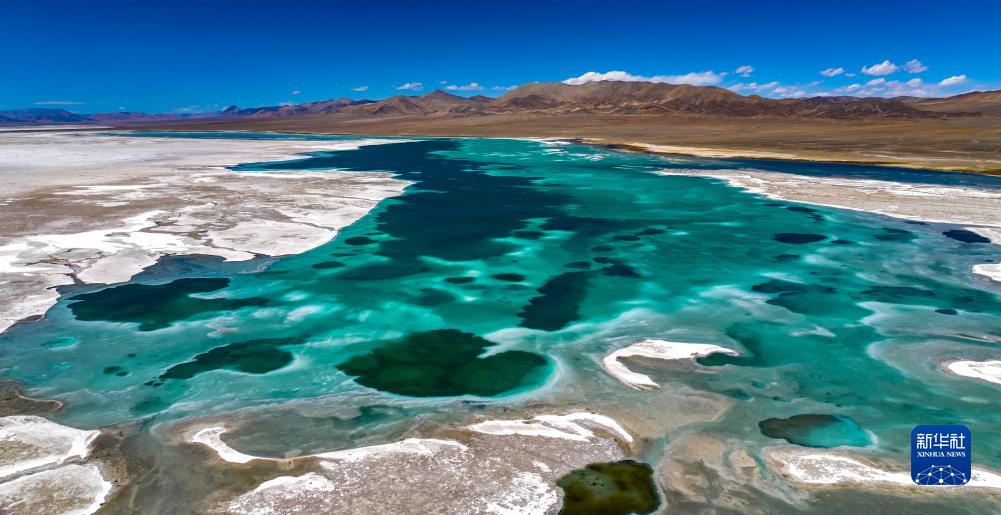 這是位于革吉縣鹽湖鄉的魯瑪仁布錯,湖畔白色地表為天然鹽礦(無(wú)人機照片,9月24日攝)。