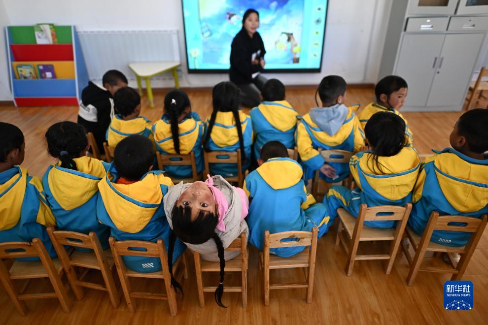 在曲麻萊縣葉格鄉幼兒園,小朋友們在課堂上(9月13日攝)。