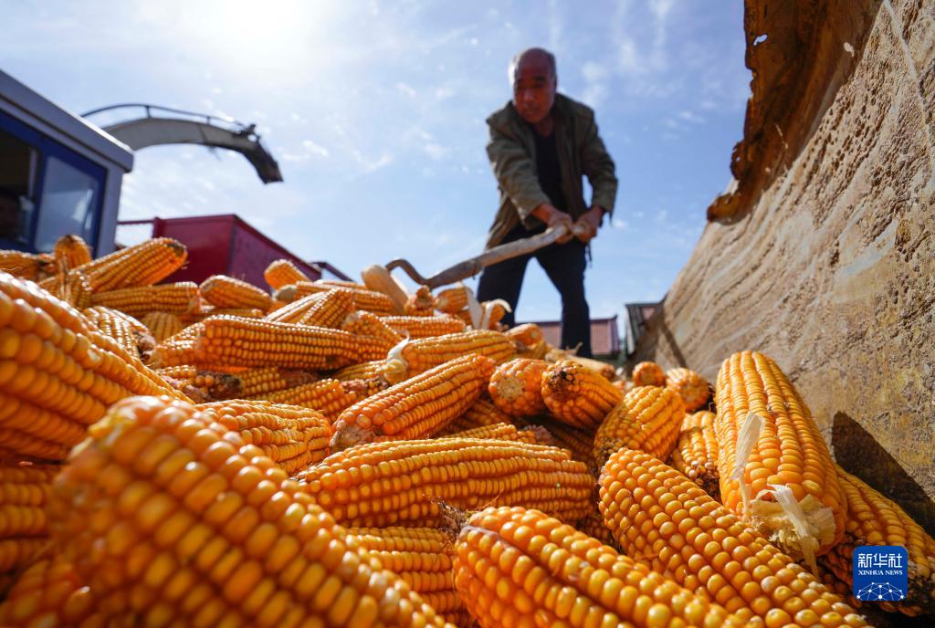 9月26日,河北省遵化市劉備寨鄉農民將收獲的玉米裝車(chē)。