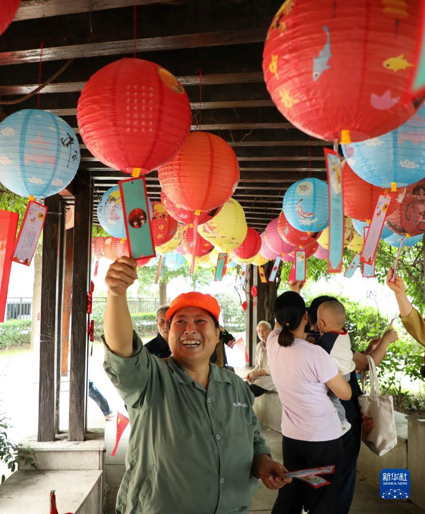 9月26日,人們在安徽省合肥市肥西縣上派鎮潭沖社區猜燈謎。