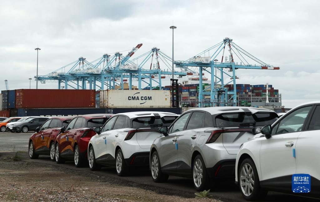 這是9月25日在比利時(shí)安特衛普-布魯日港拍攝的中遠海運(港口)澤布呂赫碼頭一角。