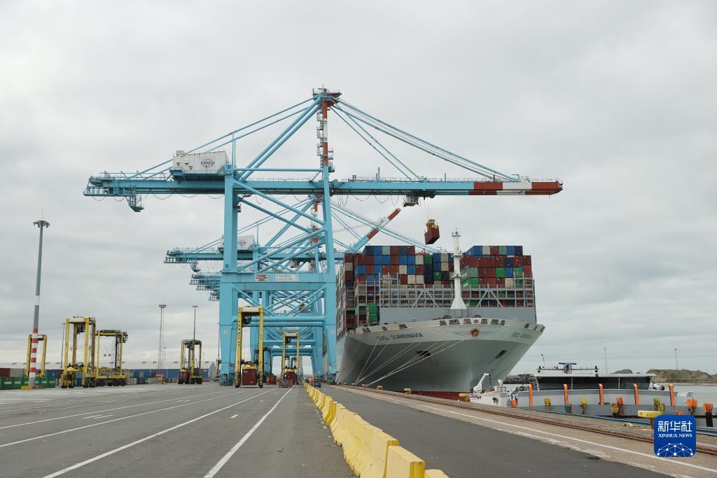 9月25日,一艘貨輪??吭诒壤麜r(shí)安特衛普-布魯日港中遠海運(港口)澤布呂赫碼頭。