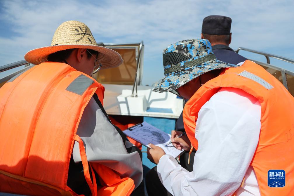 9月15日,武蓉(左)和馮琛通過(guò)地圖查看取樣點(diǎn)位。