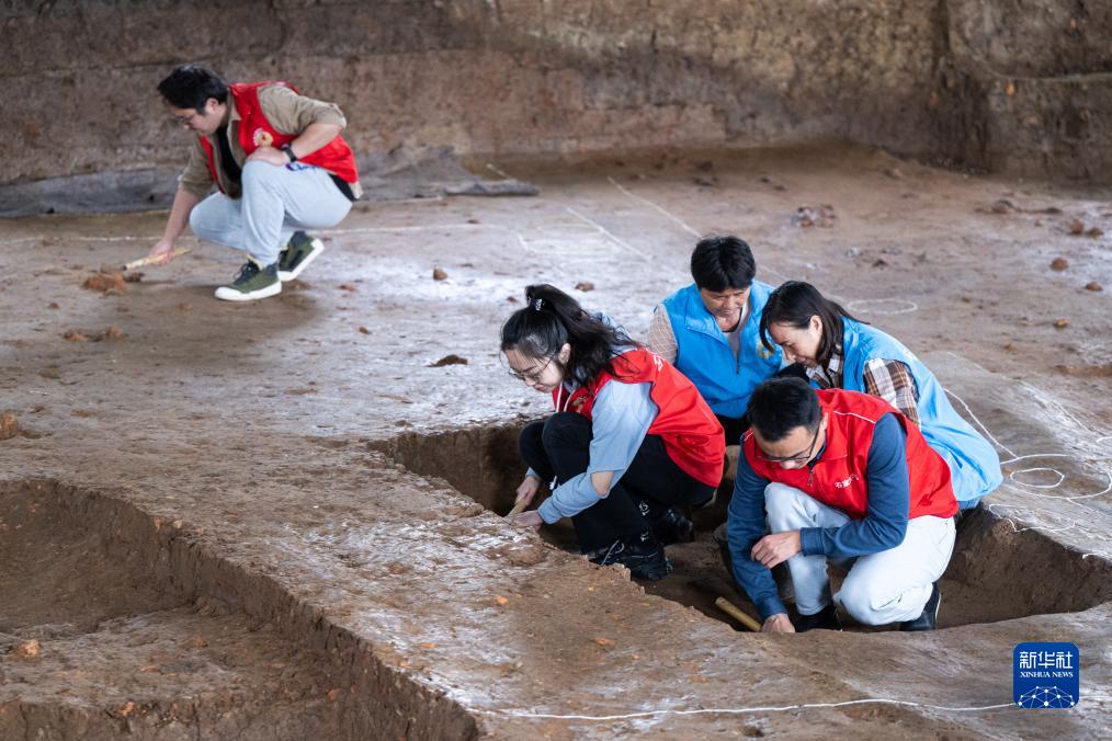 9月27日,湖北省文物考古研究院和天門(mén)市博物館的考古工作人員在石家河遺址的譚家嶺發(fā)掘現場(chǎng)進(jìn)行考古工作。