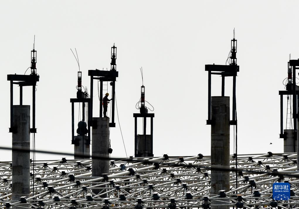 9月27日,建設者在廣州白云國際機場(chǎng)T3航站樓西北指廊進(jìn)行屋頂鋼結構安裝施工。