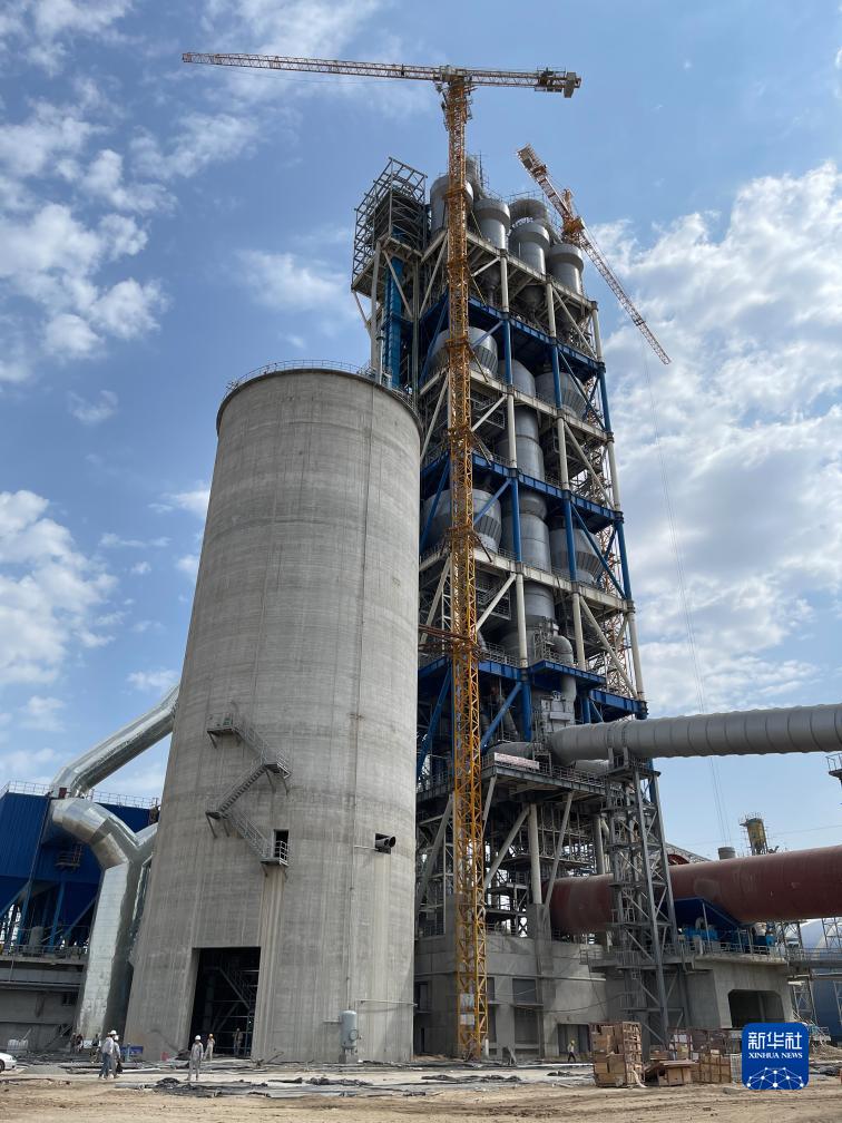 這是9月16日在烏茲別克斯坦撒馬爾罕州拍攝的水泥生產(chǎn)線(xiàn)項目預熱器。