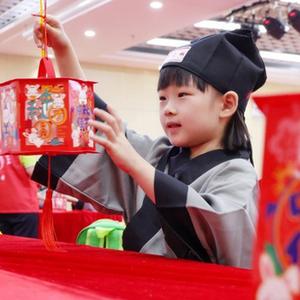 9月27日,在山東省青島西海岸新區,小朋友展示做好的中秋花燈。