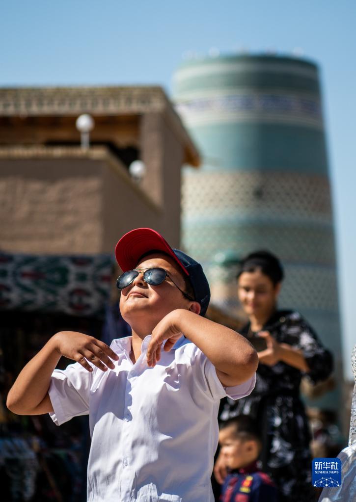 9月21日,兒童在烏茲別克斯坦花拉子模州的希瓦古城內游玩。