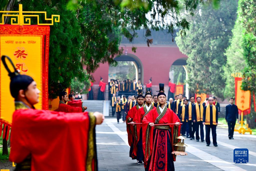 當日,中國(曲阜)國際孔子文化節·癸卯年祭孔大典在“孔子故里”山東曲阜孔廟舉行,以紀念至圣先師孔子誕辰2574年。