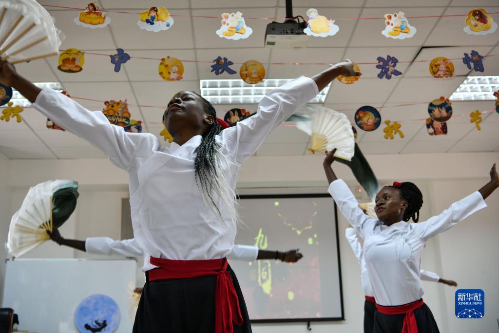 9月28日,肯尼亞學(xué)生在內羅畢大學(xué)孔子學(xué)院舉辦的“詩(shī)劇頌中秋,中肯共月明”中秋慶典活動(dòng)上表演中國傳統舞蹈。