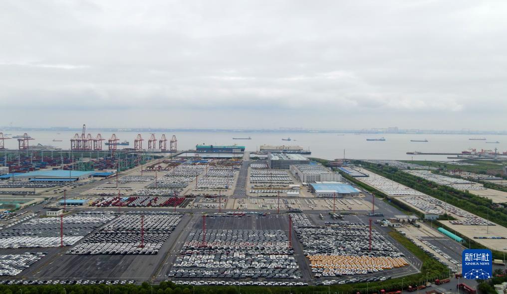 這是上海外高橋海通國際汽車(chē)碼頭(2022年5月25日攝,無(wú)人機照片)。