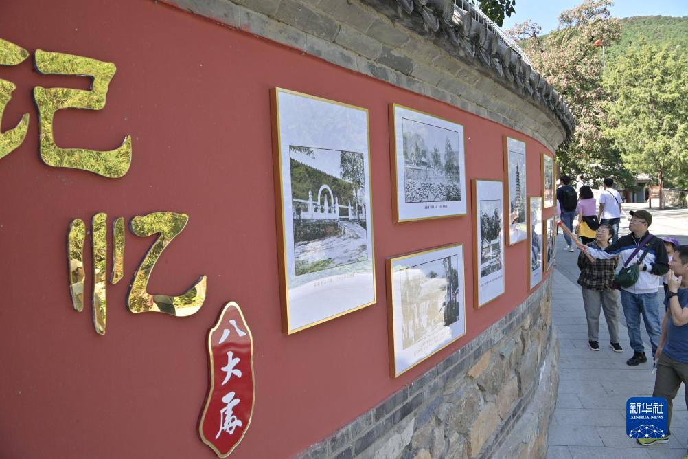 9月30日,游客在北京八大處公園參觀(guān)公園老照片。