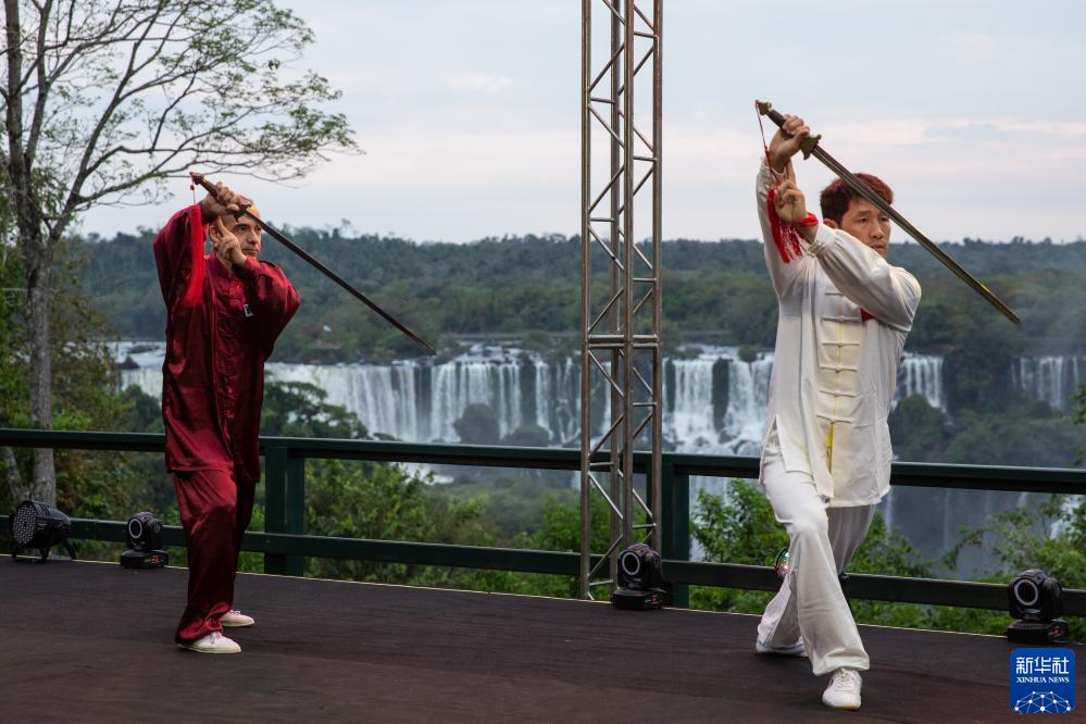 9月29日,演員在巴西伊瓜蘇舉行的中秋晚會(huì )上進(jìn)行武術(shù)表演。