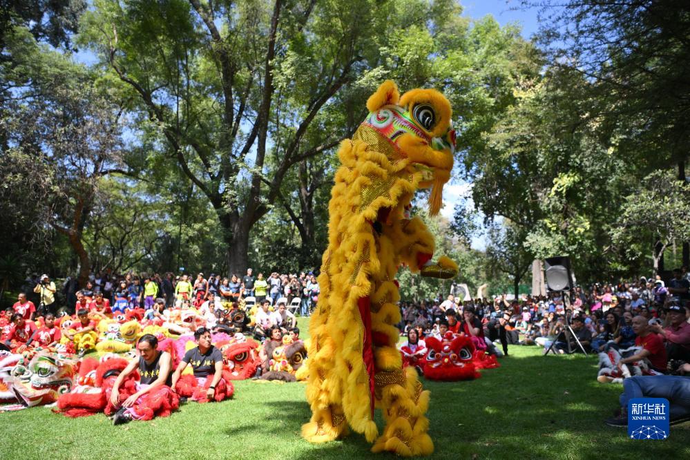 9月29日,在墨西哥首都墨西哥城,表演者在中秋文化活動(dòng)中進(jìn)行舞獅表演。