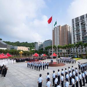 10月1日,澳門(mén)特別行政區政府在金蓮花廣場(chǎng)隆重舉行升旗儀式,慶祝中華人民共和國成立74周年。