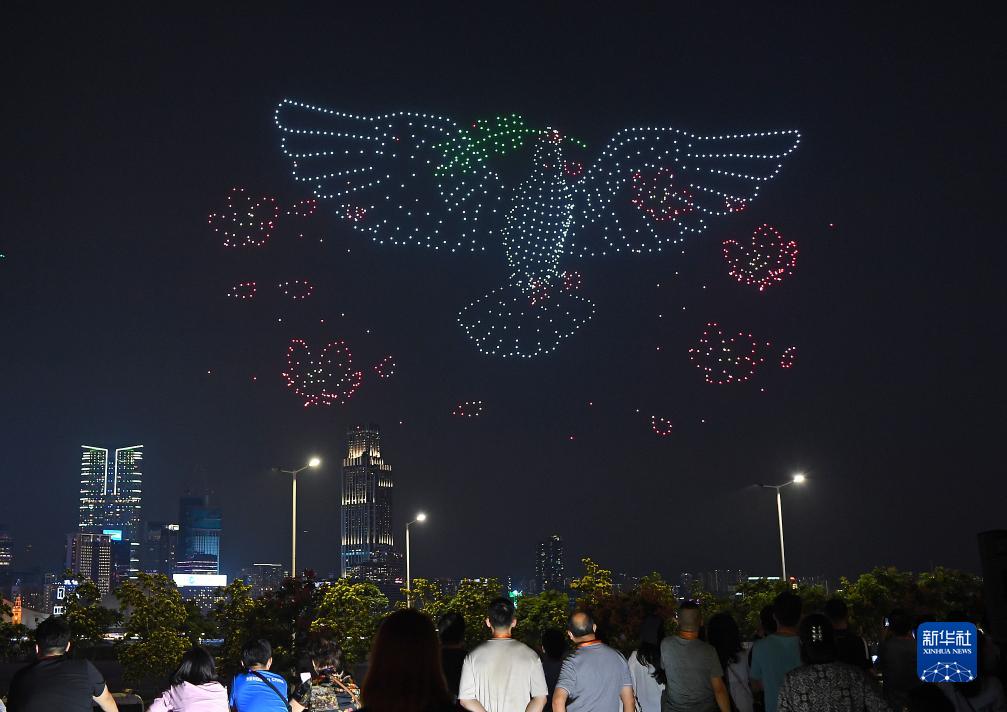 9月30日,1200架無(wú)人機從香港中環(huán)海濱騰空而起,伴隨著(zhù)流動(dòng)的圖案和變幻的造型,為“月來(lái)越好·歡樂(lè )灣區”無(wú)人機燈光秀表演揭開(kāi)了序幕。表演通過(guò)矩陣飛行把科技與藝術(shù)完美結合,向人們傳遞著(zhù)中秋、國慶的祝福。