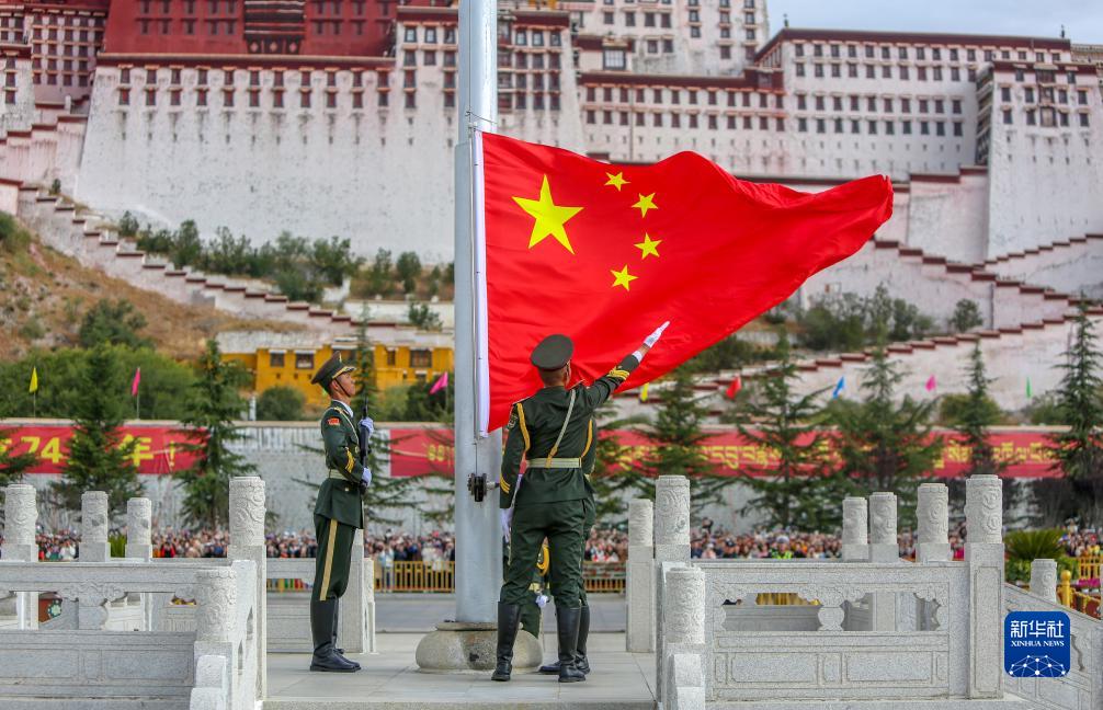 10月1日上午,西藏自治區慶祝中華人民共和國成立74周年“升國旗、唱國歌”儀式在拉薩布達拉宮廣場(chǎng)舉行。