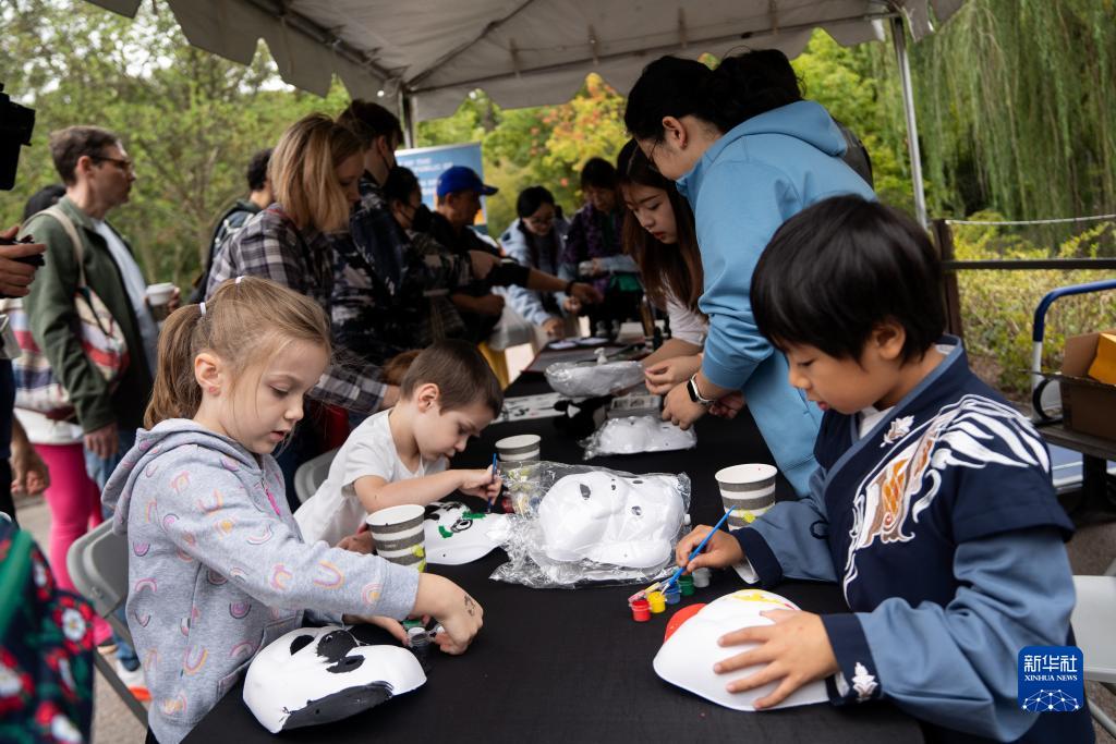 9月30日,在美國華盛頓史密森學(xué)會(huì )國家動(dòng)物園,小朋友們制作大熊貓主題面具。