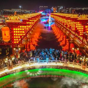 當日是國慶節,河北省唐山市豐南區河頭老街景區燈光璀璨,流光溢彩,市民和游客紛紛前來(lái)賞景、游玩,歡度佳節。