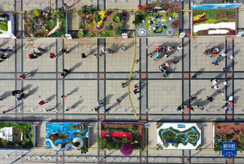 10月2日,市民和游客在石家莊市首屆園林“微景觀(guān)”制作大賽成果展上參觀(guān)(無(wú)人機照片)。