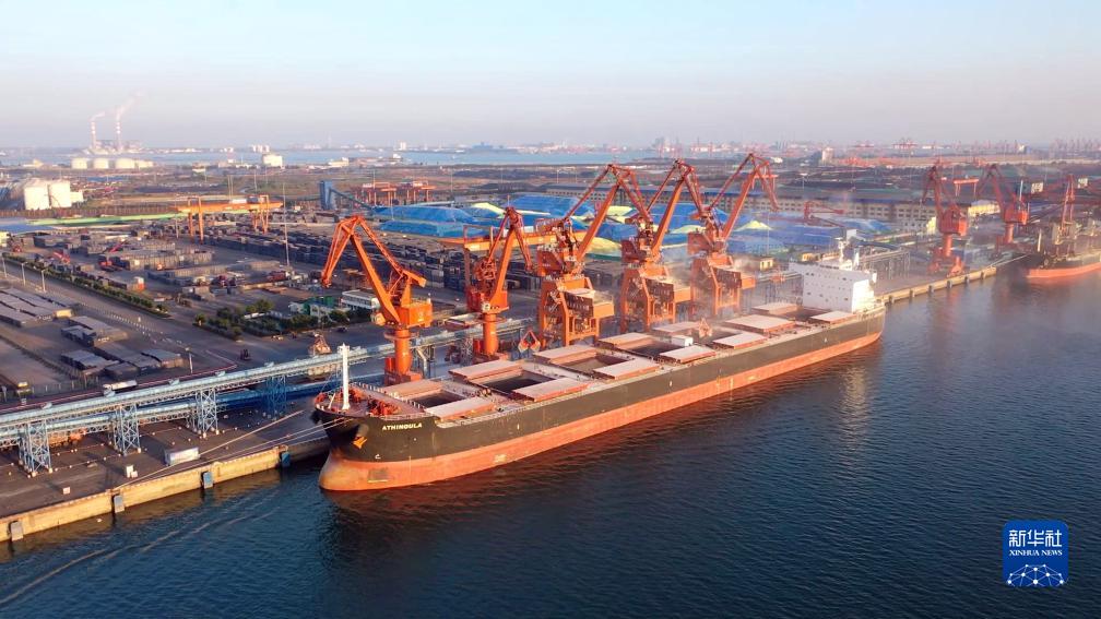 海輪在廣西防城港散貨碼頭卸貨(9月16日攝,無(wú)人機照片)。
