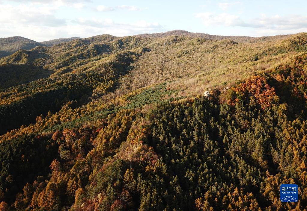 這是10月2日拍攝的黑龍江省海林市的五花山景觀(guān)(無(wú)人機照片)。